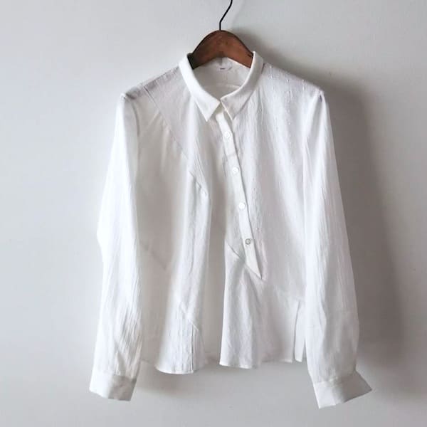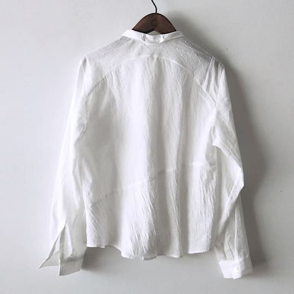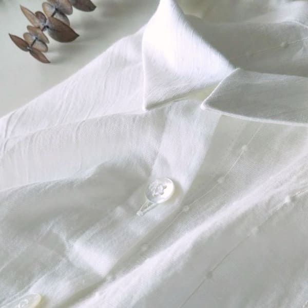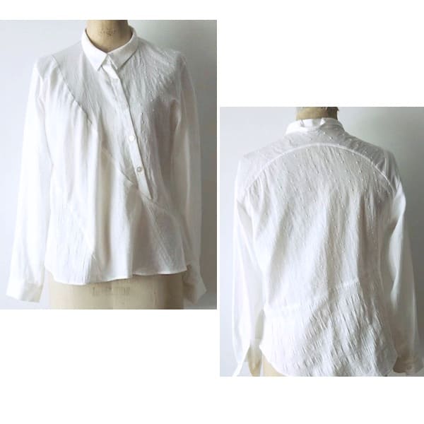 【2025秋冬】胸切替ギャザー くるみ釦 シャツ(コットンピケ)