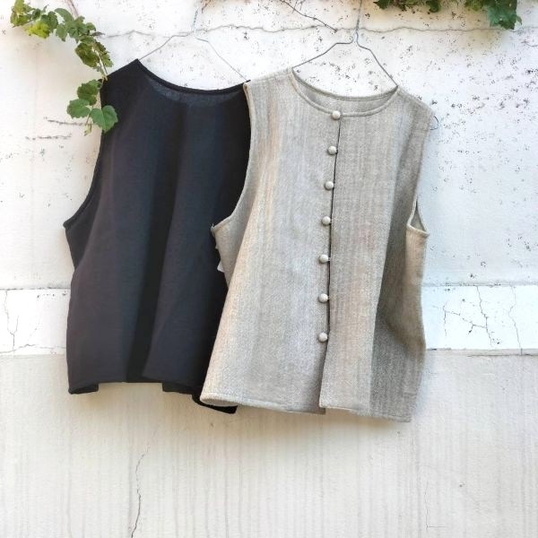 【2025秋冬】くるみ釦開きベスト(ウールガーゼ)