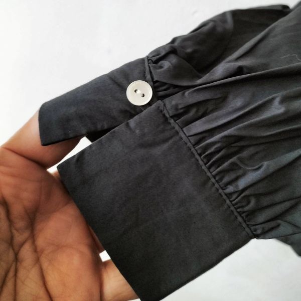 ギャザーなど使わずに身幅を広めにした、